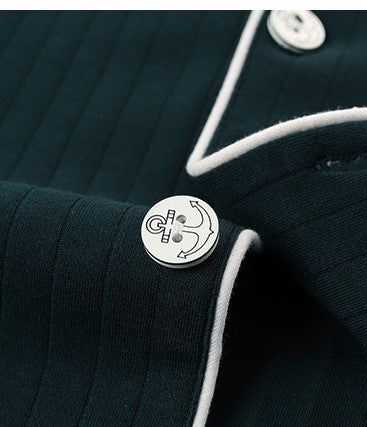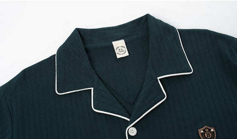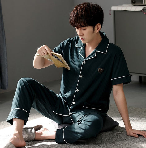 Drawing Needle Cotton Pajamas Men's Cardigan With Pockets Men's Short-Sleeved Homewear Suit