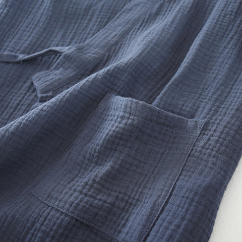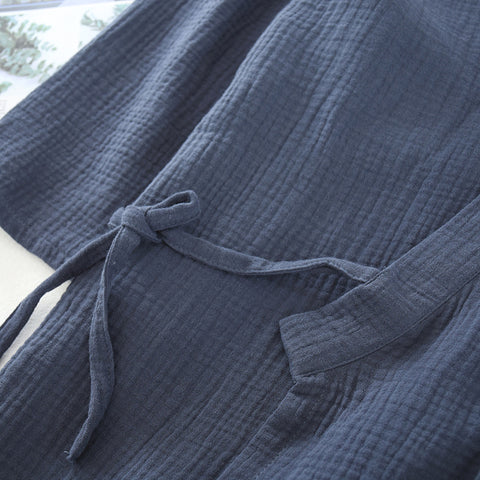 Men's Cotton Crepe Kimono Pajamas Solid Set Loose Casual Home Wear