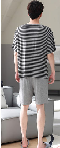 Pajama Set Men Ribbed Modal Cotton Round Neck Summer Short Sleeve Shorts Homewear
