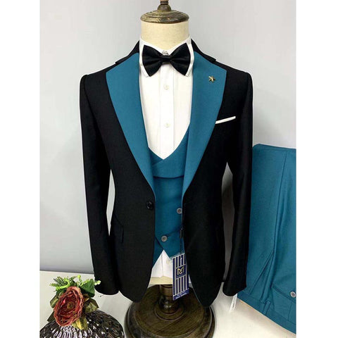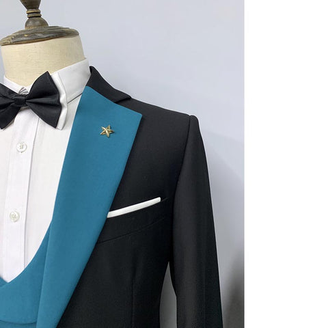 3.Good Price For 3 Pieces Suit Set* The suit set contains 1 piece of jacket with shawl lapel, 1 piece of vest with U neck collar and chest pocket and 1 pair of suit trousers .