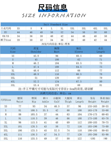 3.Good Price For 2 Pieces Suit Set* The suit set contains 1 piece of jacket with shawl lapel and 1 pair of suit trousers .