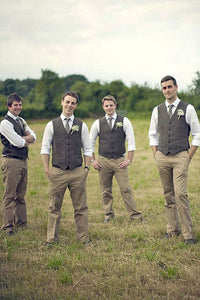 Wedding Vest Green Brown Grey Plaid Navy Satin Groomsmen Vest