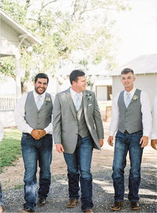 Silver Grey Satin Vest for Groomsmen Wedding Party Men's Waistcoat