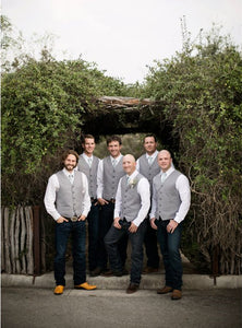 Men's V Neck Dark Grey Herringbone Vest Loose Fit Formal Wedding Groomsmen