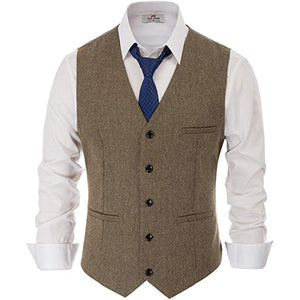 Men's Suit Vest V Neck Single Breasted Wool Tweed Herringbone Silm Fit Formal Vest