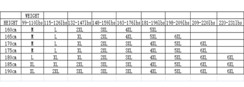 | *Our standard size chart is not a standard US size chart because we ship internationally. |